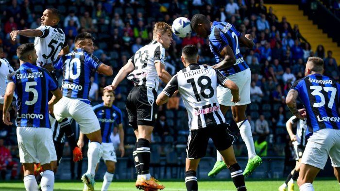 L'Udinese batte in rimonta l'Inter 3-1 e trova la quinta vittoria di fila, oltre alla momentanea testa solitaria della classifica. La squadra friulana si porta a 16 punti ed eguaglia la sua miglior partenza in campionato (2000/01). Nella massima serie la formazione bianconera non arrivava a cinque successi consecutivi dal dicembre 2017, sotto la guida tecnica di Massimo Oddo. La prima occasione del match è dei padroni di casa. Al 3' Lovric ha la palla dell'1-0 dal limite dell'area, ma la palla viaggia oltre il palo. Lo spavento scuote l'Inter che si affida alla classe di Nicolò Barella. L'ex Cagliari al 5' si prende l'incarico di una punizione dal limite e spedisce la palla all'incrocio dei pali. La reazione dell'Udinese arriva ugualmente su calcio piazzato. Al 22' Deulofeu crossa al centro dalla destra, la palla carambola sul corpo di Skriniar e termina alle spalle di Handanovic. Simone Inzaghi prova a dare la scossa. L'allenatore decide di sostituire al 31' gli ammoniti Bastoni e Mkhitaryan per inserire Gagliardini e Dimarco in campo. Al 52' l'ex Hellas propizia la prima chance del secondo tempo. Cross perfetto per la testa di Dumfries che sfiora la traversa. Poco dopo Dzeko trova il gol, ma è in posizione di fuorigioco. Al 58' arriva un giallo pesantissimo per Brozovic che, da diffidato, sarà costretto a saltare il prossimo match con la Roma. Al 63' si accende Lovric che strappa tra le linee e cerca l'angolo ma Handanovic si distende e si supera. Al 73' l'Udinese sfiora ancora una volta il vantaggio con Deulofeu che calcia d'interno in area e colpisce il palo con lo sloveno immobile. Inter e Udinese sono le due squadre che nel campionato in corso hanno realizzato più reti nei 15 minuti finali di partita (quattro). E all'85' l'Udinese trova il sorpasso. Sugli sviluppi di un calcio d'angolo, Bijol si stacca e di testa batte Handanovic. Nel recupero Arslan di testa firma il 3-1 dopo l'ennesima ripartenza perfetta e condanna i nerazzurri alla terza sconfitta stagionale.