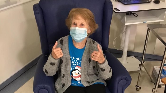 Le immagini del momento sono state condivise su Twetter dal profilo ufficiale della NHS England and NHS Improvement. Margaret, che compirà 91 anni la prossima settimana, ha commentato: Mi sento così privilegiata. E’ il più bel regalo di compleanno in anticipo che avrei mai potuto desiderare, non vedo l’ora di poter passare del tempo con la mia famiglia e i miei amici dopo esser stata sola per gran parte dell’anno.”