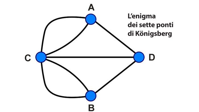 Uno dei più noti enigmi matematici è quello dei sette ponti di Königsberg. La città di Königsberg (oggi Kaliningrad) era attraversata da un fiume con sette ponti. L'enigma chiedeva se fosse possibile attraversare tutti i ponti una sola volta senza mai tornare sui propri passi. Il matematico Leonhard Euler dimostrò che era impossibile, gettando le basi per la teoria dei grafi, oggi essenziale in molte applicazioni tecnologiche.