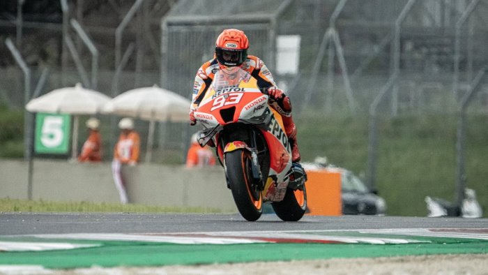 Marc Marquez ottiene la pole position di MotoGP nel Gran Premio del Giappone. Nelle qualifiche sul circuito di Motegi, il pilota spagnolo della Honda firma il miglior tempo sul bagnato ottenendo il crono di 1'55"214. Dietro di lui ci sono il francese della Pramac Johann Zarco (arrivato dal Q1) e il sudafricano Brad Binder con la Ktm. Quarto posto per Maverick Vinales (Aprilia), in seconda fila assieme a Jorge Martin e Aleix Espargaro. Niente da fare per Francesco Bagnaia, che scatterà dalla dodicesima casella domani in gara, mentre Fabio Quartararo, leader del mondiale, è nono in qualifica con la sua Yamaha. Fuori già in Q1 Enea Bastianini, quindicesimo.