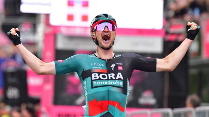 Seconda vittoria per Nico Denz al Giro d'Italia 2023. Il corridore tedesco della Bora-hansgrohe, già a segno 48 ore fa sul traguardo di Rivoli, si è aggiudicato lo sprint ristretto che ha deciso la quattordicesima tappa della corsa Rcs, la Sierre-Cassano Magnago di 193 chilometri. A completare il podio di giornata il canadese Derek Gee (Israel-Premier Tech) e l'italiano Alberto Bettiol (EF Education-EasyPost). A far festa tra i 29 fuggitivi di giornata anche il francese Bruno Armirail (Groupama-FDJ), che sfila la maglia rosa al britannico Geraint Thomas (Ineos Grenadiers), col gruppo dei migliori che è giunto al traguardo con un gap superiore ai 20'. Domani la quindicesima frazione, la Seregno-Bergamo di 195 chilometri. (Italpress)