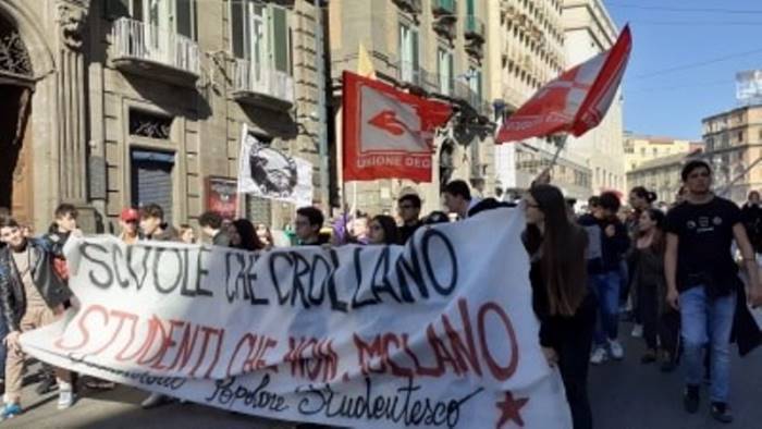 La delegazione studentesca scesa in piazza stamane a Napoli ha avuto un ncontro con il consigliere delegato all’edilizia della Città Metropolitana di Napoli Marrazzo. Sono state illustrate tutte le varie problematiche inerenti la sicurezza deigli edifici. Una folla di studenti ha invaso via Matteotti.