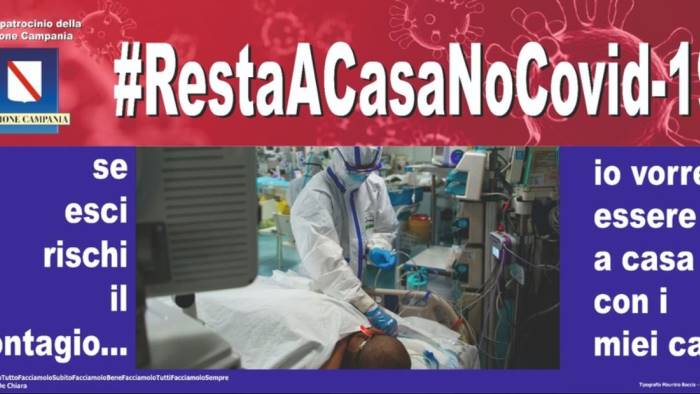 È il testo di una pubblicità di forte impatto emotivo che è apparsa sui manifesti con il patrocinio morale della Regione Campania. Lo spot raffigura un malato di coronavirus intubato in terapia intensiva assistito da un medico. È il frutto dell’idea di un medico salernitano Vincenzo De Chiara, fisico sanitario e medico oncologo radioterapista, trascorsi di consulenza alla Nasa. che insieme ad altri medici e imprenditori della sanità privata regionale ha voluto diffondere un messaggio più incisivo e chiaro ai cittadini in un m omento in cui sembrano allentarsi le maglie delle restrizioni sul piano nazionale mentre la Regione Campania insiste con la necessità di rispettare rigorosamente le misure e i divieti. Ecco perché l'iniziativa ha incontrato il patrocinio morale della Regione Campania conil presidente De Luca e il consigliere Picarone che hanno pienamente condiviso. Una campagna mediatica per invitare i cittadini campani ad evitare i contatti a non abbassare la guardia.