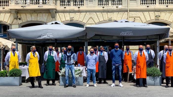 I ristoranti partenopei hanno ripreso l’attività poco dopo le 12 e i titolari del locali del lungomare di via Partenope hanno deciso di ricominciare manifestando la loro gratitudine ai medici e agli infermieri. Camerieri, cuochi, pizzaioli e titolari si sono schierati davanti ai ristoranti e poi hanno applaudito tutti insieme.