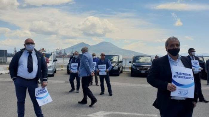"Autisti invisibili". È quanto si legge sui cartelli esposti dall'associazione bus turistici Campania che ha indetto per stamattina una manifestazione nella stazione marittima di Napoli.