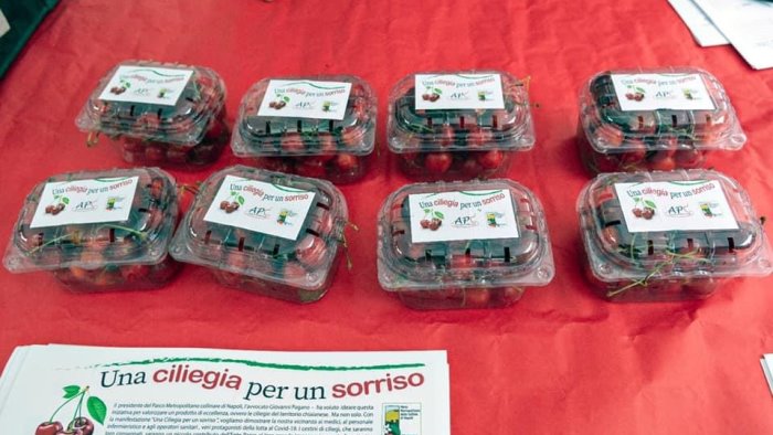L’Ente Parco metropolitano delle Colline di Napoli ha donato cestini di ciliegie al personale sanitario e infermieristico dell'ospedale Cardarelli che sono stati in prima linea nell'emergenza Covid e non solo. L'iniziativa 'Una ciliegia per un sorriso' è mossa dallo spirito di strappare simbolicamente un sorriso a chi ha dato tutto nella lotta al coronavirus e allo stesso tempo valorizzare le ciliegie di Chiaiano.