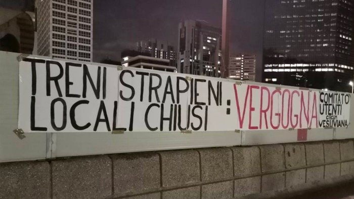 “Treni strapieni, locali chiusi: vergogna!” È questo il messaggio apparso su alcuni striscioni affissi ieri sera sia nelle stazioni Eav di Porta Nolana e piazza Garibaldi, che all'esterno del palazzo del consiglio regionale dagli aderenti al comitato ‘’Comitato Utenti Vesuviana”.