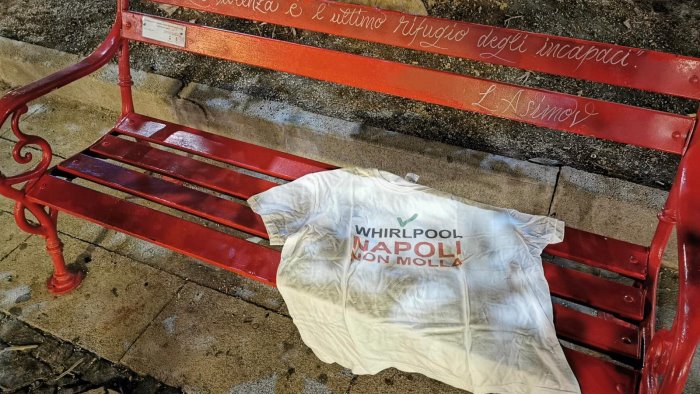 Oggi, per la “Giornata internazionale per l'eliminazione della violenza contro le donne”, le bacheche social dei lavorati della Whirlpool useranno come profilo l’immagine della panchina rossa, simbolo di questa giornata, con sopra la maglietta bianca, ormai famosa, con la scritta “Whirlpool Napoli non molla”.
