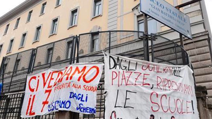 Continua la protesta contro la chiusura delle scuole. Stamattina sono stati esposti striscioni fuori ad alcune scuole di Napoli e della Campania, sui quale si legge “Ci vediamo il 7…”.
