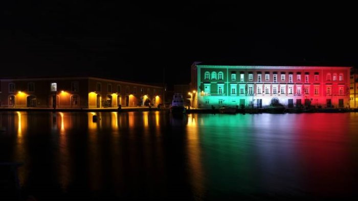 Nella giornata dell’anniversario dell’Unità d’Italia, la storica base navale di Napoli si illumina con il tricolore, in occasione delle celebrazioni nazionali.