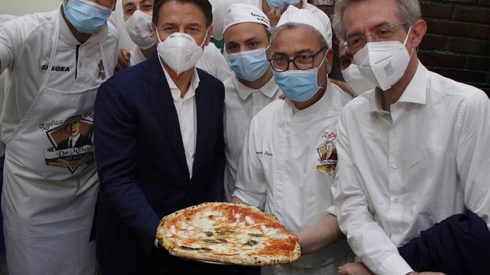 Una vera e propria maratona tra la gente di Napoli. "Si può passare da qui senza fermarsi a mangiare una pizza?" Foto dalla pagina facebook di Giuseppe Conte.