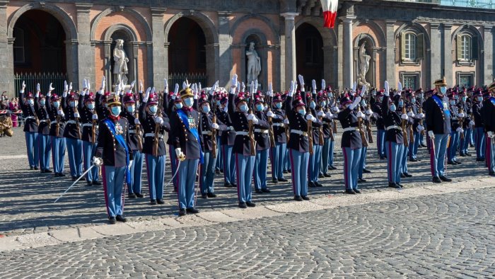 Questa mattina, in Piazza del Plebiscito a Napoli, gli Allievi del 234° Corso hanno prestato giuramento di fedeltà alla Repubblica Italiana, alla presenza del Ministro della Difesa, On. Lorenzo Guerini, del Capo di Stato Maggiore della Difesa, Ammiraglio di Squadra Giuseppe Cavo Dragone, del Capo di Stato Maggiore dell’Esercito, Generale di Corpo d’Armata Pietro Serino, del Comandante per la Formazione, Specializzazione e Dottrina dell'Esercito, Gen. C.A. Salvatore Camporeale e del padrino del corso, medaglia d’oro al valor militare, Gen. C.A. Rosario Aiosa.