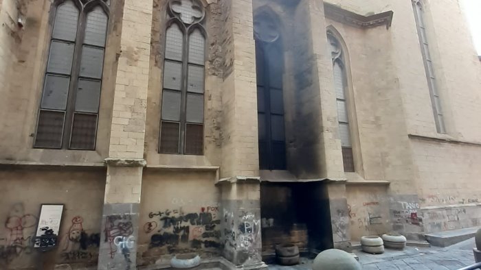 Durante la notte le baby gang hanno dato fuoco alla facciata laterale della monumentale chiesa di Sant'Eligio (1270). Il rogo realizzato in occasione dei "fuocarazzi" ha bruciato e danneggiato le pareti in tufo della chiesa angioina.