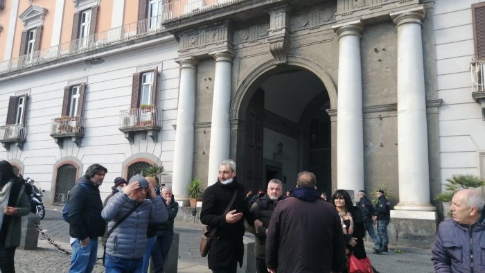 Questa mattina, i lavoratori della Compagni Trasporti Pubblici S.p.A., si sono ritrovati in Piazza del Plebiscito, nei pressi della Prefettura di Napoli, per rivendicaregli stipendi arretrati secondo gli accordi sottoscritti in sede prefettizia il 31 gennaio scorso. Peppe Ferruzzi del Coordinamento Provinciale Usb Lavoro privato e Roberto Ascione, Rsa usb in CTP, lamentano l'assenza delle Istituzioni in un momento delicatissimo della vertenza, nonché la mancata applicazione degli accordi.