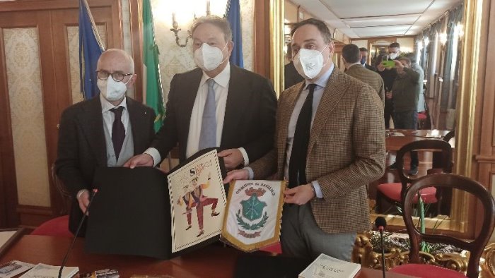 “Purtroppo la situazione pandemica ha reso impossibile anche per quest'anno il lavoro dei comitati e quindi la realizzazione della nostra festa. Il nostro augurio è quello che l'anno prossimo possiamo presentare la nostra manifestazione qui in questa prestigiosa sede istituzionale”, ha detto il sindaco Vincenzo Simonelli ringraziando il presidente Oliviero e il consigliere Iovino.