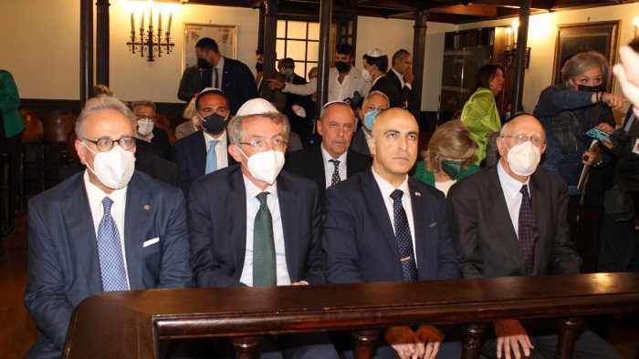 Quella tra Napoli e Israele è un'amicizia lunga duemila anni che si rinsalderà con una due giorni di appuntamenti. Il primo si è tenuto oggi con la visita del sindaco Gaetano Manfredi alla Sinagoga. Accompagnato dall'ambasciatore d'Israele in Italia, Dror Eydar, il primo cittadino di Napoli ha fatto visita per la prima volta alla comunita' ebraica numericamente piu' rilevante a sud di Roma. Nel corso della visita la fascia tricolore ha conferito una targa a Tullio Foà, 88enne che ha portato la sua testimonianza ai tempi delle leggi razziali del 1938. Il sindaco, inoltre, ha ricordato il ruolo ricoperto dagli ebrei partenopei in occasione delle “quattro giornate di Napoli”. «Quella rivolta popolare - ha ricordato Manfredi - consentì non solo la liberazione dal Nazismo ma anche di riaffermare un principio di autonomia che e' un sentimento storico della città».