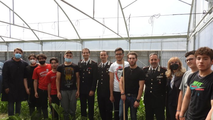 Nelle attività pratiche il timone è passato ai ragazzi che, con orgoglio, hanno presentato l’orto e la serra realizzati nei giardini della scuola. Un’attività questa, nata per volere della Prof.ssa Carfora che ha voluto offrire agli studenti un’occasione concreta per cimentarsi nella cura della terra, imparando a riceverne i doni solo dopo aver profuso il proprio costante impegno. I ragazzi da alcuni mesi, infatti, hanno proceduto alla bonifica e preparazione del terreno, hanno realizzato una serra in cui sono stati piantati ortaggi, che oggi vengono già alla luce, e hanno realizzato un agrumeto con pergolato. Nella giornata dedicata alle attività esterne, i Carabinieri forestali hanno assistito gli studenti nel lavoro in serra e nell’orto, offrendo consigli e illustrando alcune tecniche di coltivazione. Al termine, I militari del Reparto Biodiversità, alla presenza del Comandante Provinciale di Napoli, Gen. B. Enrico Scandone, nell’ambito della campagna “Un albero per il futuro” promossa dal Ministero della Transizione Ecologica, hanno donato all’Istituto una talea dell’albero di Falcone, che sarà curata e messa a dimora nella scuola contribuendo a formare il “Grande bosco diffuso” costituito da tutte le giovani piante donate alle scuole e visibili su un’apposita piattaforma web. La presenza dell’Albero di Falcone concorrerà a sensibilizzare i ragazzi sul tema dell’impegno sociale ma anche sull’importanza della salvaguardia ambientale.