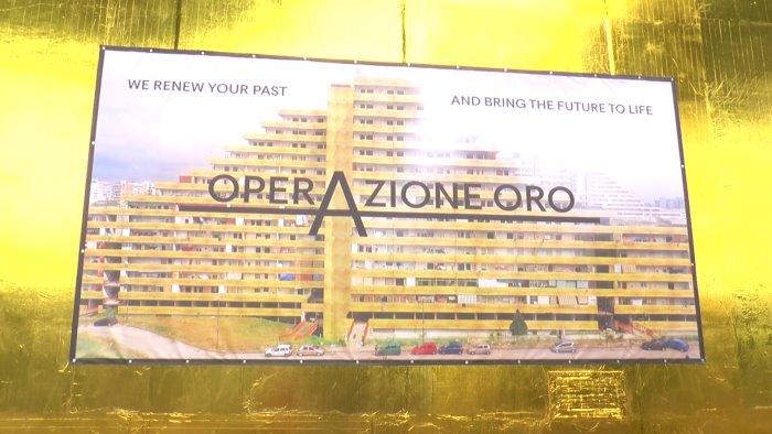 "Apprezziamo lo sforzo di qualcuno che rappresenta anche le istituzioni di portare la bellezza anche nei luoghi cosiddetti periferici del città; se non fosse per una gigantografia che ritrae una delle vele di Scampia tutta tinta d’oro. Pur sforzandoci non comprendiamo il senso di questa opera, ma soprattutto non l’apprezziamo, per una serie di ragioni sociali e civiche.