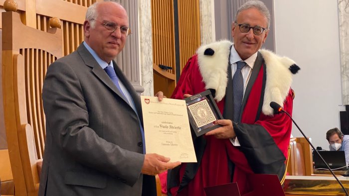 Il professore spiega: in questa facoltà ho iniziato gli studi. Sono felice del riconoscimento