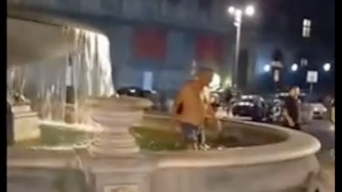 Turista inglese fa bagno in fontana a Piazza Trieste e Trento: "Inaccettabile"