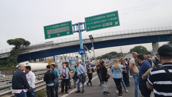 Il blocco dell'autostrada è stato revocato dopo oltre un'ora, dopo l'impegno assunto dal prefetto di Napoli Claudio Palomba a ricevere una delegazione delle maestranze Whirlpool domani mattina.