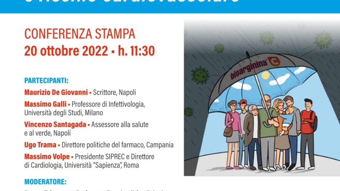 Il 20 ottobre alle 11.30 a Napoli presso l'Auditorium Farmaceutici Damor (Via Emilio Scaglione 27) si svolge la conferenza stampa con la partecipazione dell’infettivologo Massimo Galli, dello scrittore Maurizio De Giovanni e del presidente di Siprec Massimo Volpe, il responsabile delle politiche del farmaco della Regione Campania Ugo Trama e l’assessore del Comune di Napoli alla salute Enzo Santagada.