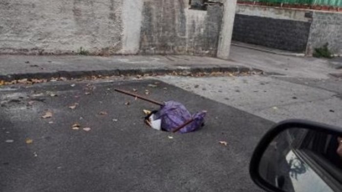 Era stata dapprima coperta con dei ferri ed un telo, poi si è allargata e qualcuno ci ha messo su un cassonetto dei rifiuti. È così che al Rione Traiano si rimedia ad una buca sul manto stradale che con il passare dei giorni aumenta sempre più di diametro.