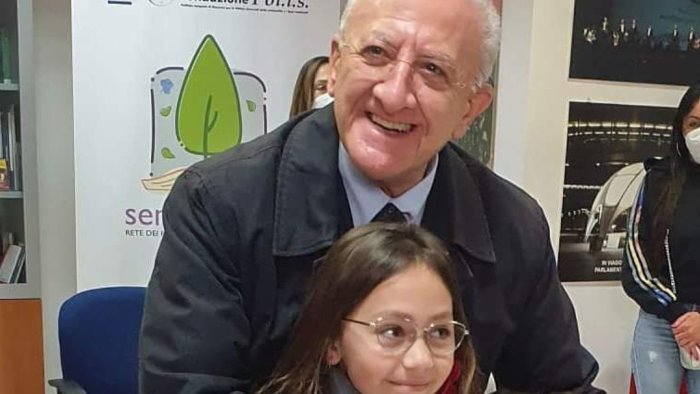 Presenti, insieme ai genitori Tania e Fabio e la piccola sorellina Greta, il governatore campano Vincenzo De Luca e il presidente della Fondazione Polis, don Tonino Palmese.