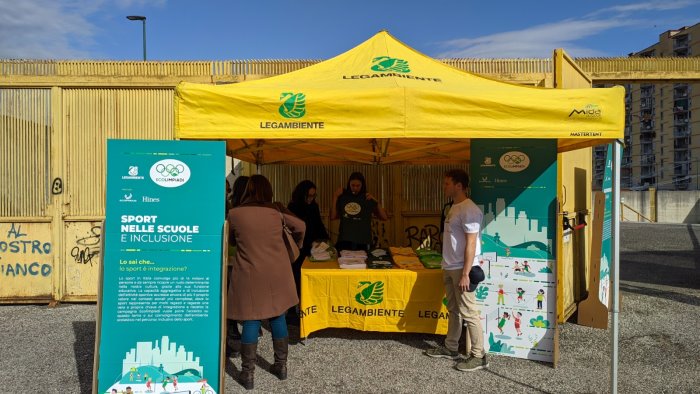 Un quartiere in festa. Cittadini, scolaresche, associazioni territoriali, società sportive, amministratori si sono ritrovati a Scampia presso lo “Stadio Antonio Landieri”/”Parco dei Cinque Continenti e della non violenza” per dare il via al tour della prima edizione di “Ecolimpiadi”, la campagna di Legambiente realizzata con il supporto di Ecopneus e Hines come partner principali e con la partecipazione di diverse federazioni sportive italiane.