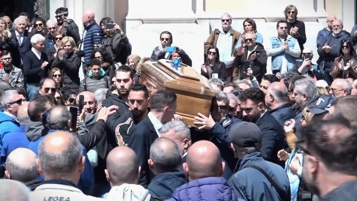 A seguire, il saluto del sindaco di Portici, Vincenzo Cuomo, che ha ricordato quanto fosse facile incontrarlo per strada, nei bar, "sempre pronto con un sorriso e una parola per tutti". In un passaggio del suo intervento il primo cittadino ha detto: "Abbiamo scoperto una persona straordinaria, uno straordinario artista e oggi nella casa di Dio dobbiamo dire grazie per avercelo donato, perché non è mai stato banale né volgare, ma ha interpretato quella napoletanità che ognuno di noi vuole, con eleganza e passione. E il fatto che oggi tantissimi artisti hanno voluto rendergli l'ultimo saluto testimoniando la grandezza e la capacità di questo artista, gente comune raccolta sul sagrato della chiesa e nella piazza.