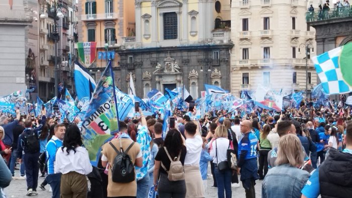 Vicoli e piazze del centro storico sono pronte da mesi a far esplodere la festa, allestite in ogni angolo con festoni, maxi bandiere, cartonati dei campioni di oggi come Victor Osimhen e di Diego Armando Maradona, mito assoluto per i tifosi napoletani che nello stadio che porta il suo nome battendo la Salernitana sognavano oggi di tornare campioni d'Italia dopo trentatre anni.