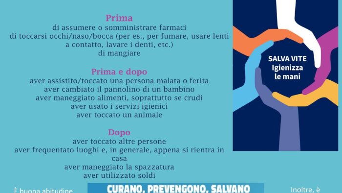 L'Asl Napoli 3 Sud diretta da Giuseppe Russo ha elaborato una campagna informativa permanente curata dall'Unità Operativa Risk Management e la si può consultare sul sito dell'azienda. "Salva la vita, lava le mani" è lo slogan adottato dalla direzione Asl Napoli 3 Sud per questa campagna informativa permanente, consultabile sul sito aziendale www.aslnapoli3sud.it.