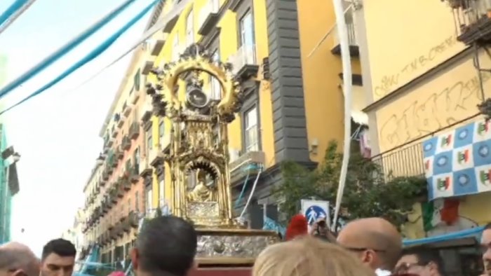 E' iniziata la lunga processione degli "Infrascati" con i 17 busti reliquiari di Santi compatroni che accompagnano il busto di San Gennaro in processione dal Duomo di Napoli verso la chiesa di Santa Chiara.