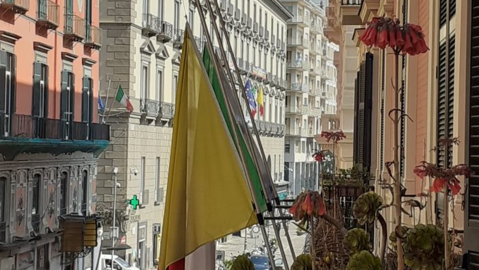Bandiere a mezz’asta oggi, a Palazzo San Giacomo e al Palazzo di Via Verdi, sede del Consiglio Comunale per la giornata di lutto nazionale proclamata per le vittime delle alluvioni in Emilia Romagna.