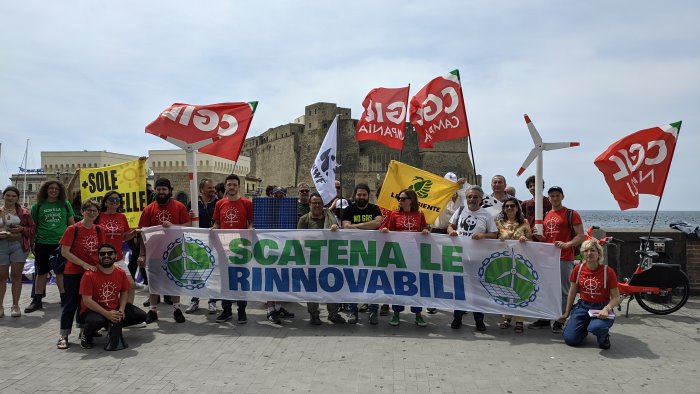 Iniziativa dal forte valore simbolico quella messa in atto stamattina a Napoli da una ventina di associazioni, accomunate dallo slogan “Scatena le rinnovabili”. Gli ambientalisti hanno rinnovato l’appello a sbloccare le autorizzazioni, tagliando la burocrazia che frena la realizzazione di nuovi impianti di energia pulita.