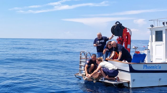 La liberazione è avvenuta al largo di Ischia, con il supporto dell’area marina protetta Regno di Nettuno, in un punto distante dal traffico marittimo più intenso del golfo di Napoli.