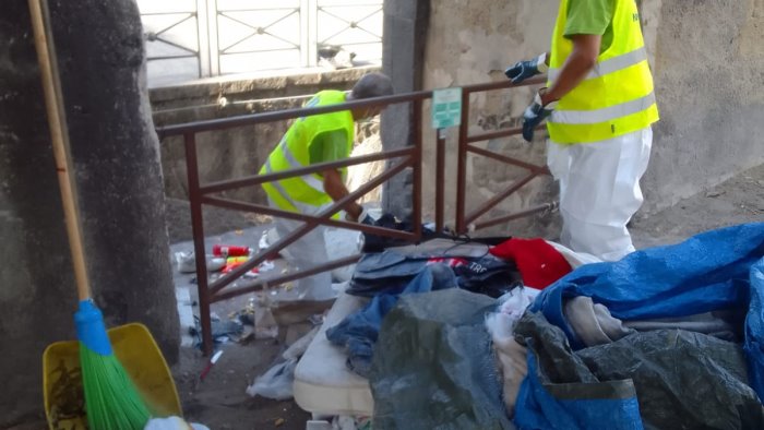 Evidenti le condizioni di degrado del sito, già in passato interessato da periodici interventi di bonifica e scelto spesso come luogo di rifugio dai senza fissa dimora. Gli interventi sono risultati particolarmente complessi dato il quantitativo di materiali presenti nell’area, raccolti e prelevati dai mezzi di Asia Napoli.