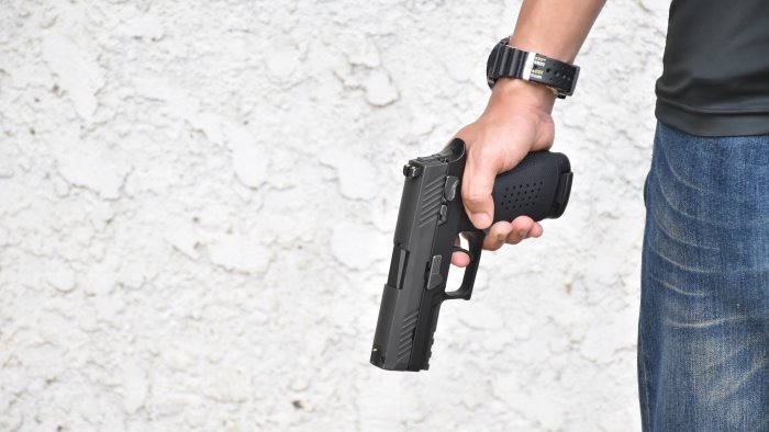 Con la pistola ha colpito la vittima sul casco e le ha rubato soldi e telefono