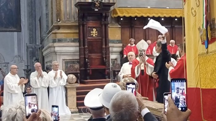 Si è ripetuto il 'miracolo' di San Gennaro. Alle ore 10.02 di oggi martedì 19 settembre il sangue si è sciolto. Pronunciando le parole "il segno del sangue ancora una volta, il sangue si è completamente sciolto" l'arcivescovo di Napoli, monsignor Domenico Battaglia, ha annunciato ai fedeli riuniti nel Duomo l'avvenuta liquefazione del sangue del Santo Patrono. Un prodigio attesissimo dai fedeli di tutto il mondo. "il sangue di Gennaro è un segno del sangue di Signore nostro Gesù versato per noi e per tutti - ha detto monsignor Battaglia -. La liquefazione del nostro Santo credo sia la semplice fotografia di ciò che avviene nella nostra città , ogni volta che viene versato il sangue dei deboli e poveri, ogni volta che una persona viene ferita, umiliata e non rispettata come persona, viene ferita l'immagine di Dio. Ogni volta che commettiamo peccato viene ferita l'immagine di nostro Dio. A volte, credo che questa reliquia sia il simbolo di questa ferita sempre aperta nella nostra città e nel mondo. Il vero miracolo avverrà quando la giustizia bacerà la pace, quando il bene vincerà sul male. Quando sarà luce contro il buio". "Lavoriamo insieme perché i poveri della nostra città non siamo più vittime. Ci sono milioni di poveri sfruttati che non riescono a mettere il pasto a tavola". Ha detto Battaglia. "Troppo spesso un lavoro dignitoso diventa miraggio lontano. Il lavoro è pane vita e speranza, ed è un diritto. Non un privilegio. Coraggio sognamo assieme il miracolo di una città meno ingiusta". Ha concluso l'arcivescovo di Napoli.
