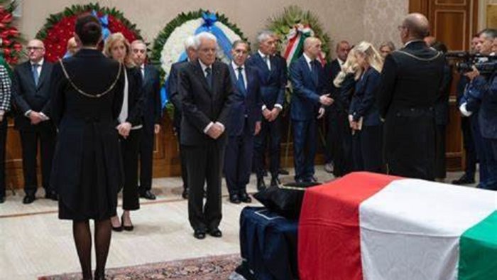 Tra i primi ad arrivare questa mattina è stato il presidente Sergio Mattarella, che ha aperto le porte della sala, alla ore 10, con il presidente del Senato Ignazio La russa. Mattarella si è trattenuto pochi minuti per omaggiare il suo predecessore. All’uscita è stato salutato con un applauso da una piccola folla di cittadini che si è radunata in corso Risorgimento, davanti al portone di Palazzo Madama. Poi il saluto del presidente del consiglio dei ministri Giorgia Meloni, che dopo essersi fermata in raccoglimento davanti al feretro, ha conversato con i familiari, intrattenendosi in particolare con il figlio Giulio.