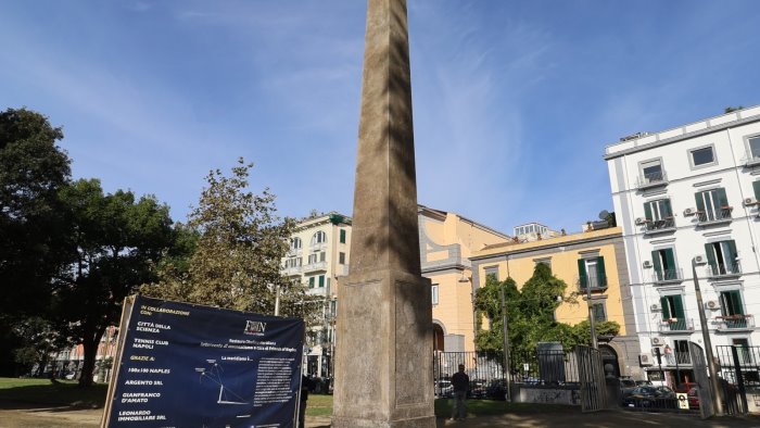 Torna all’antico splendore l’obelisco della Meridiana della villa comunale di Napoli. Il risultato del restauro realizzato grazie all’intesa tra il Comune di Napoli e i mecenati dell’associazione "Friends of Naples" è stato rivelato alla città alla presenza del sindaco Gaetano Manfredi insieme a Rosalia D’Apice, della Soprintendenza Archeologia Belle Arti e Paesaggio per il Comune di Napoli, ad Alberto Sifola, presidente Friends of Naples, di Riccardo Villari, presidente Tennis Club Napoli e di Edgardo Filippone, presidente Unione Astrofili Napoletani.