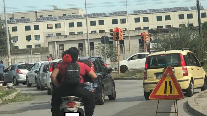 A segnalare l’incosciente famigliola centaura tutta al femminile è un automobilista che si è rivolto al deputato dell’alleanza Verdi-sinistra Francesco Emilio Borrelli: “Una ragazzina nemmeno maggiorenne che porta una moto con una signora dietro che ha una bimba in braccio di appena qualche anno. Ci trovavamo a Scampia nei pressi della posta centrale di via Bakù.”