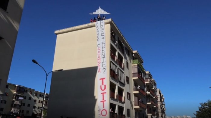 Uno striscione con la scritta "Presidente cosa vuole Scampia? Tutto" è stato esposto su un palazzo nei pressi del polo delle professioni sanitarie dell'Università Federico II nel quartiere Scampia, dove in mattinata è prevista la visita del Presidente della Repubblica Sergio Mattarella. A esporre lo striscione sono stati gli attivisti del Comitato Vele di Scampia. Mattarella è atteso nel quartiere dell'area nord di Napoli dove si recherà al termine della cerimonia di apertura dell'anno accademico nella sede centrale della Federico II, che quest'anno festeggia gli 800 anni dalla sua fondazione.