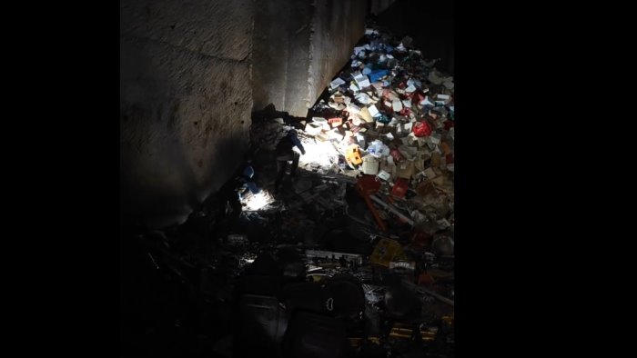 Dentro sono stati rinvenuti rifiuti di ogni genere: dalle cassette di plastica e scatole di cartone a vecchi oggetti per la casa, materiale indifferenziato per un’altezza totale di circa 6 metri.