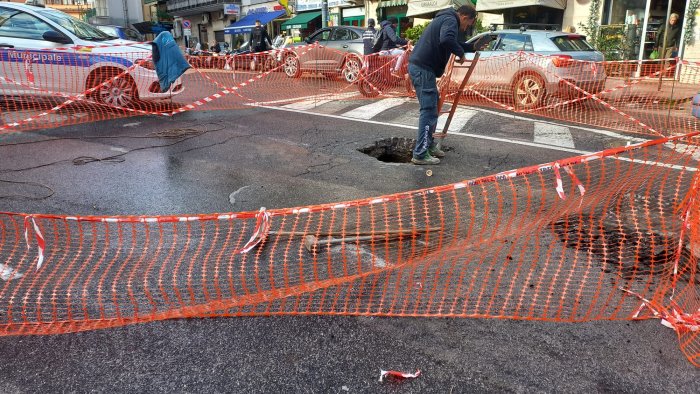 Cedimento causato dalla rottura di una fogna privata. Lavori conclusi entro venerdì