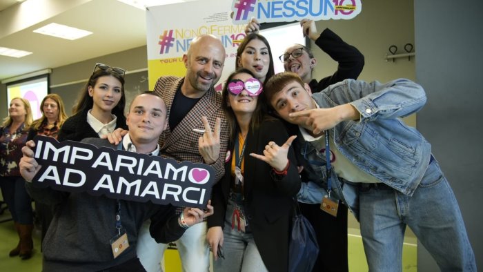 "Meraviglioso" l'intervento in collegamento da Berlino di Giuliano Sangiorgi, frontman dei Negramaro, ospite a sorpresa della tappa napoletana: “Portate sempre con voi il sud che avete dentro - ha spiegato -. Nascere nelle periferie e nelle zone territorialmente difficili non è uno svantaggio ma un'occasione. Studiate, siate affamati di conoscenza ed apritevi al desiderio di conoscere l'altro. Nessuno avrebbe scommesso sui Negramaro. Ci dicevano che era impossibile spostare un band dal Sud al Nord ma noi ce l'abbiamo fatta con quella forza e quella caparbietà che arrivava proprio dalla nostra terra che, da sempre, ci da una forza incredibile".