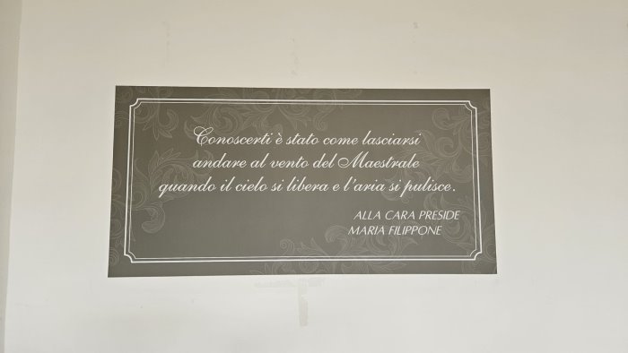 A fare gli onori di casa la dirigente scolastica Annunziata Campolattano che ha donato al prof De vito ed al figlio una targa commemorativa dell'intitolazione del plesso.
