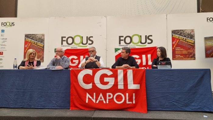 La Cgil - ha affermato il segretario confederale Luigi Giove - è in campo da mesi per contrastare gli interventi di questo governo che non danno risposte alle lavoratrici e ai lavoratori, alle pensionate e ai pensionati. Noi pensiamo che il lavoro sia stato svalorizzato in questo paese, che ci siano troppi problemi che non vengono affrontati e risolti, a partire da quelli che riguardano la sicurezza sul lavoro, la precarietà, il salario, il reddito, dalla necessità di rendere libero il lavoro da attività coercitive di sfruttamento". "Per questa ragione - ha concluso Giove - noi siamo in campo, sabato prossimo ci sarà una manifestazione nazionale a Roma, insieme alla Uil, il 25 maggio manifesteremo proprio a Napoli per chiedere di fermare l'idea di premierato e di autonomia differenziata che spezzerebbe il paese e ridurrebbe il Sud ad una colonia del resto dell'Italia".