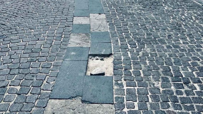 Simbolo del degrado - continua Capodanno - una buca al centro della carreggiata nel tratto pedonalizzato di via Luca Giordano, all'altezza del civico 115. Una buca causata dalla mancanza di una lastra di basalto che è stata asportata e non sostituita, peraltro neppure recintata per segnalare il pericolo, in attesa dei necessari interventi.