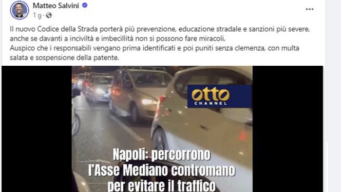 Così il vicepremier e ministro delle Infrastrutture e dei Trasporti, Matteo Salvini sull'assurda vicenda di Napoli dove alcuni automobilisti, per evitare il traffico, hanno percorso contromano l'asse mediano.